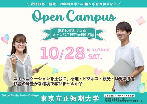 2026年3月までのオープンキャンパス情報を紹介。オンライン参加OK、個別見学相談など気軽に参加できるイベントも多数掲載中。