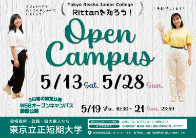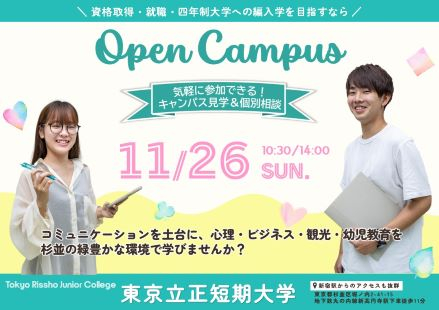 学校からのお知らせ 学校からの最新のお知らせをお届けいたします 川口短期大学 ~~💁令和8年度入試はじまります📢~~ ◆指定校推薦型選抜◆ 【出願期間】 第Ⅲ期 令和7年12月15日(月)~ 1月 6日(火) 【試験日】 第Ⅲ期 令和8年1月10日(土) 【選考方法】 指定校推薦型選抜推薦書、志望理由・活動報告書、調査書及び口頭試問による総合判定 【出願資格】 ● 本学を第一志望とする者 ● 出身学校の校長の推薦を得られる者 ● 全体の学習成績の状況が次の基準以上の者。 ビジネス実務学科:3.0以上 こども学科:3.0以上 (注)別途高等学校あてに通知する「指定校推薦型選抜要項」にて出願してください。 ◆公募推薦型選抜◆ 【出願期間】 第Ⅲ期 ※指定校推薦型選抜と同じ 【試験日】 第Ⅲ期 ※指定校推薦型選抜と同じ 【選考方法】 公募推薦型選抜推薦書、志望理由・活動報告書、調査書及び口頭試問による総合判定 【出願資格】 ● 本学を第一志望とする者 ● 出身学校の校長または教諭の推薦を得られる者 ● 全体の学習成績の状況が3.0以上で出願できます。 ● 全体の学習成績の状況が3.0未満でも、高等学校在学中に生徒会役員・委員長等の経験者、クラブ活動・ボランティア活動等に取り組んだ者、 実用英語技能検定や簿記検定・日本漢字能力検定などの資格を取得している者は出願可能です。 <総合型選抜1月期・2月期>のお知らせ! 【学科】 ビジネス実務学科 こども学科 【出願期間】 1月期 [出願期間]12月15日(月)~ 1月 6日(火) [試験日] 1月10日(土) 2月期①[出願期間] 1月 5日(月)~ 1月29日(木) [試験日] 2月 5日(土) 🍧詳細は、ホームページ・学生募集要項をご確認ください。 ~~🎄12月20日(土)オープンキャンパス開催のお知らせ🎄~~ 🚐無料のスクールバスで快適に移動🚐 開催時間 10:00 受付9:30~ 学科ごとに分かれて学科説明⇒学生スピーチ⇒体験授業 入試説明・個別相談・在学生によるキャンパスツアー・学食ランチ体験など 入学後の雰囲気まで感じ取っていただけるはず! ●「総合型・学校推薦型選抜対策講座」開催! ●入試説明 詳しくご説明いたします! ●個別相談 学科の事、授業の事、単位の事など何でも質問にお答えします! 将来の夢をかなえたい人! まだ夢が見つかってない人! 川短ってどんなところか知りたい人! 在学生に色々聞いて! 先生に色々聞いて! まずは、川短のオープンキャンパスへ行ってみよう! 保護者様やお友達とのご参加もOKです! 【体験授業】 〔ビジネス実務学科〕 「アニメで学ぶ環境問題:鬼滅の刃,もののけ姫、ゴールデンカムイで描かれる自然観」 小島 望 教授 〔こども学科〕 「紙で作ろう、紙で遊ぼう 第2弾」 (児童文化) 佐々木 美和 准教授 「子どものSOSにいちはやく気づくために」 西内 俊朗 講師 〔イベント〕 「子どもといっしょに楽しむマインドフルネス」 マインドフルネスとは、今、この瞬間に起きていることを、あれこれ価値判断しないで、五感を働かせて受け入れることを大切にします。 このこころの心地よさを一緒に体験してみましょう! 🍧詳細はホームページをご確認下さい。 https://www.kawaguchi.ac.jp/opencampus/ ~~🎐平日のキャンパス見学🎐~~ 土曜・日曜は部活で忙しいなど、オープンキャンパスの参加が難しい方 平日のキャンパス見学を実施しております。 皆様からのご予約をお待ちしております🙇 🍧詳細はホームページをご確認下さい。 https://www.kawaguchi.ac.jp/admissions/ 埼玉東萌短期大学 ★オープンキャンパス受付中★ 埼玉東萌短期大学は「こどものために学ぶ」大学です。 こどもたちの笑顔や健やかな成長のために、まずは体験授業に参加してみませんか? 埼玉東萌短期大学・幼児保育学科では、卒業と同時に国家資格である幼稚園教諭、保育士免許の取得ができます。また話題の認定絵本士資格も取得可能です。(埼玉県内の大学、短期大学、専門学校の中で唯一の認定校です。) 徒歩1分の所にある保育園をはじめ5つの関連保育園があり、こどもとの触れ合いを通した学びができるのも本学の特色です。 「先生と話しやすく何でも相談できるから安心」、「得意なことが見つかり伸ばすことができた」などの声が良く聞こえてきます。 12月のイベントをご紹介します。当日予約もOKです!! 12/19(金)オンラインオープンキャンパス 18:30~19:30 12/21(日)来場型 オープンキャンパス 13:00~15:00 その他… 学科説明、入試説明、学費奨学金説明、リピーター講座、キャンパスツアー、個別相談コーナーなどを行います 【当日の流れ】 ◇受付 ↓在学生や卒業生の様子などのオープニング動画がご覧になれます。 ◇模擬授業 (毎回違った内容でお待ちしております♪) ↓ ◇学校・入試・学費奨学金説明 ↓ ◇キャンパスツアー・個別相談など (学生スタッフ・卒業生がご案内します♪先輩と話せるチャンスです。些細なことでもわからないことは何でも聞いちゃおう♪) ↓ ◇終了 ◎持ち物はなし、服装は自由です。 ◎お一人でもご家族やお友達との参加でも大歓迎です。 実際に足を運び、埼玉東萌短期大学
