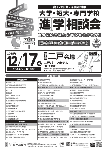 2025年12月17日(水) 大学・短期大学・専門学校 進学相談会【二戸会場】
