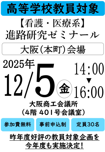 【高等学校教員対象】看護・医療系 進路研究ゼミナール 大阪会場