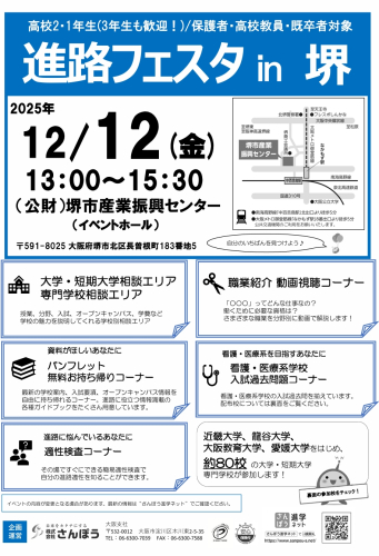 2025年12月12日(金)大学・短期大学・専門学校等 進路フェスタ in 大阪(堺)
