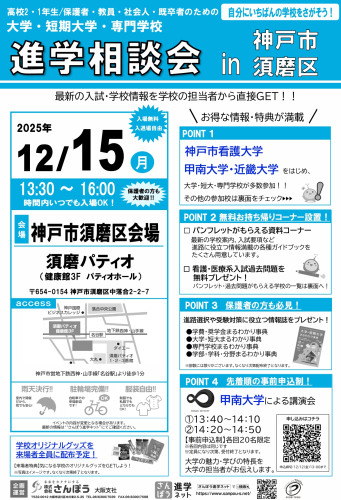 2025年12月15日(月)大学・短期大学・専門学校合同 進学相談会 【神戸市須磨区会場】in 須磨パティオ