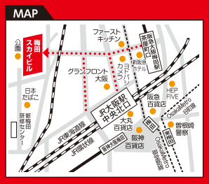 - JR「大阪」駅、阪急・阪神「大阪梅田」駅、大阪Metro「梅田」駅より徒歩10分