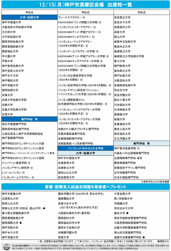 2025年12月15日(月)大学・短期大学・専門学校合同 進学相談会 【神戸市須磨区会場】in 須磨パティオ