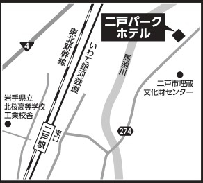 - 〒028-6101 岩手県二戸市福岡字八幡下69-1 二戸パークホテル 1階 豊明殿 GoogleMapで開く