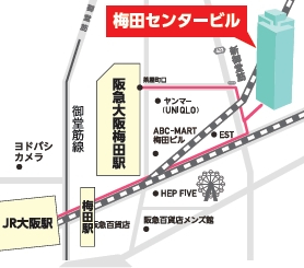 - 阪急「大阪梅田」駅より徒歩約5分、大阪メトロ「梅田」駅・JR「大阪」駅より徒歩約9分