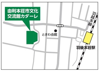 - 〒015-0076 秋田県由利本荘市東町15 由利本荘市文化交流館カダーレ GoogleMapで開く