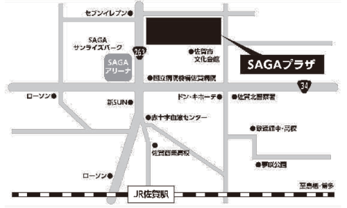 - JR佐賀駅より徒歩約15分またはバス停SAGAサンライズパーク(市文化会館前)下車