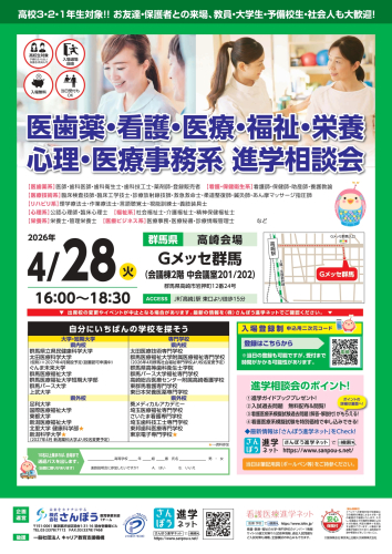【水戸会場】4月20日(月)医歯薬・看護・医療・福祉・心理・医療事務系 進路相談会