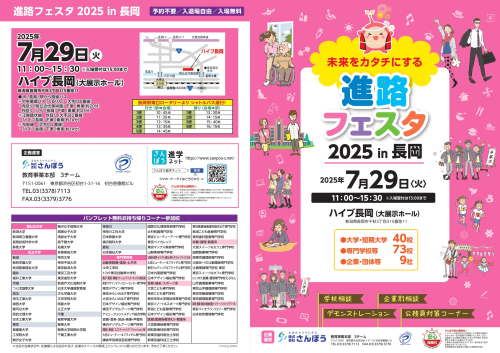 弊社主催の進路イベントの直前または当日のお問い合わせにつきましては、案内チラシに記載しております電話番号へご連絡をお願いいたします。