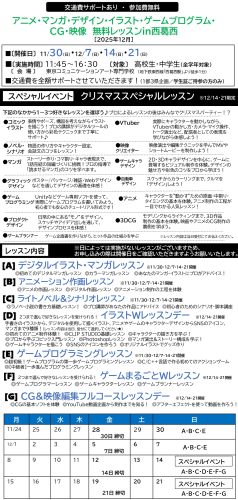 【交通費補助/参加費無料】中学・高校生対象●アニメ・マンガ・デザイン・イラスト・ゲームプログラム・CG・映像 無料レッスンin西葛西(12月版)