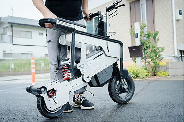 個人活動として電動折りたたみバイク「タタメルバイク(仮称)」の製作を始め、2021年にタタメルバイクの会社 ICOMA Inc. を創業しました。CADで箱バイクの機構を作成しTwitterに投稿したところ、1万いいねくらい頂きました。知らない方々から意見をいただいたり、「こんなデザイン欲しいです」と言っていただいたりする体験が、講評で先生やクラスメイトから意見を貰った時以来の感覚ですごく楽しくて、バイクの製品化を意識し始めました。ミニチュア用のデータだったところからアップデートして、プレゼンシートにまとめたり、走れるモデルにするために部品を調達したりして、当時はまだ走れない状態だったのですが展示会に出展してみました。すると反応がとても良かったので、頑張って製品化しようと思い独立しました。現在は製品化を目指して、生産体制や安全性を検討しているところです。
