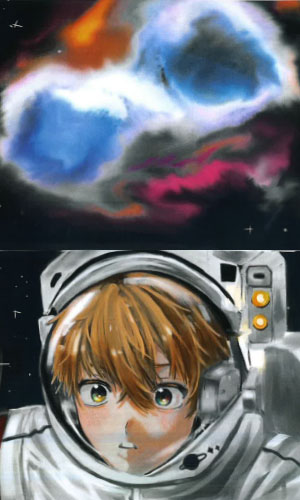 私の中の無限大の創造力をコンセプトに描きました。女の子がペンをにぎり、キャラクターをデザインしている様子です。