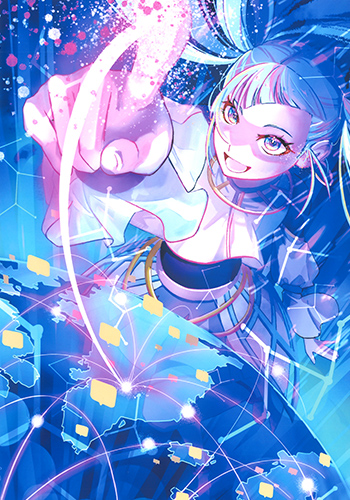 人と人とのつながりを作るインターネットをイメージして描き、地球のどこでもつながれるところに無限大を感じるように描きました。