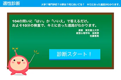 好きなことや得意なことを答えるだけで、あなたに向いている仕事を導き出します。気軽にチャレンジしてみてください!