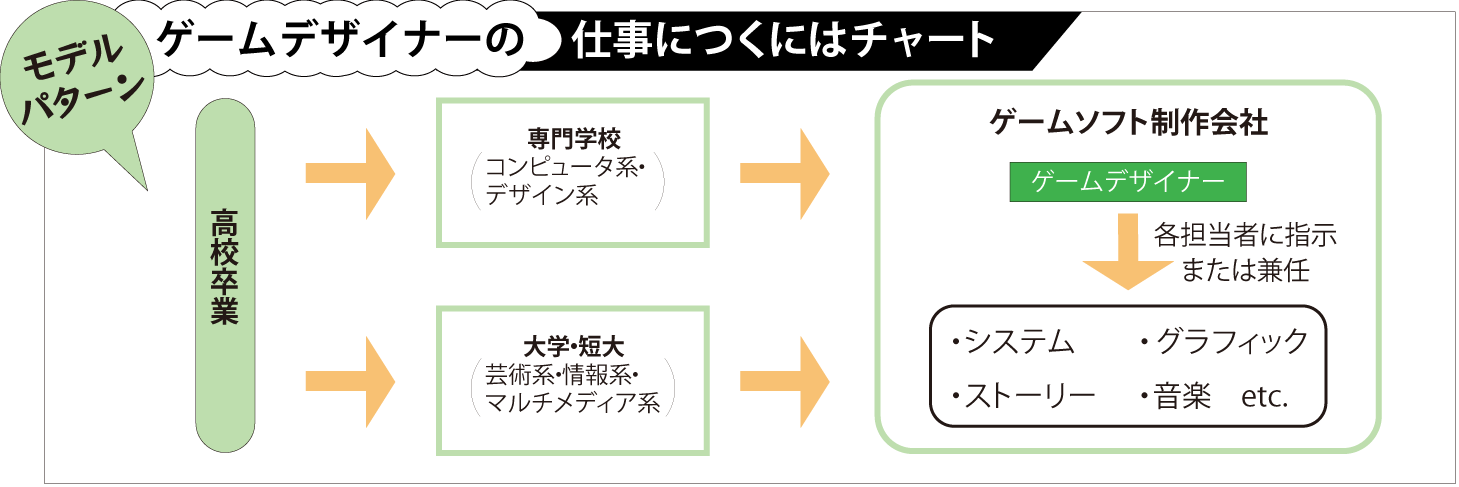 ゲームクリエイターは、ゲームを制作する仕事全般を指す言葉で、おもに以下の職種があります。