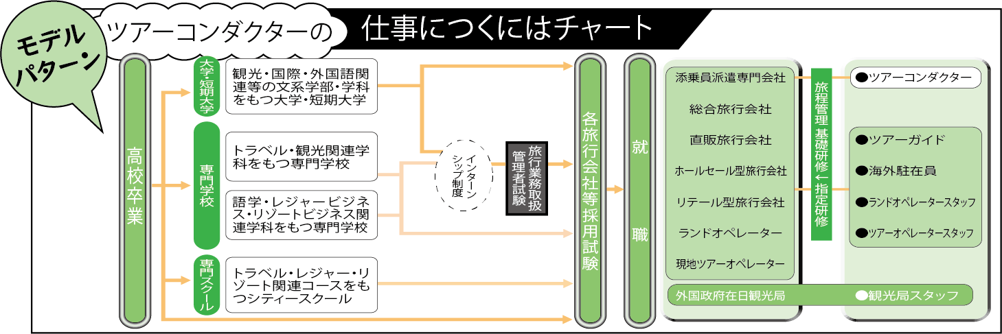 ツアーコンダクターになるには「旅程管理主任者」の資格(公的資格)が必要です。国内のみ添乗可能な「国内旅程管理主任者」と、国内・海外両方可能な「総合旅程管理主任者」の2種類があります。