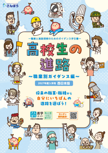 《新版》高校生の進路 職業別ガイダンス編【西日本版】 無料 2026年5月発行 B5判自分に合った職業分野を巻頭の「チャート式適職チェック」で導き出し、それぞれの職業とその分野を学べる大学・短期大学・専門学校の学部・学科を紹介したガイドブックです。