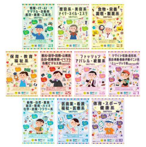 日本の産業を10業種に分類し、仕事に必要な知識や技術を習得できる専門学校や大学・短期大学などを紹介しています。