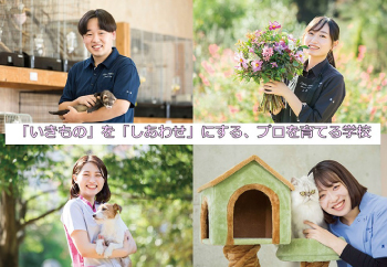 職業実践専門課程全科認定校。校有動物約100頭!カットモデル犬1,500頭以上登録。充実した環境の中で、動物業界のスペシャリストを目指そう。