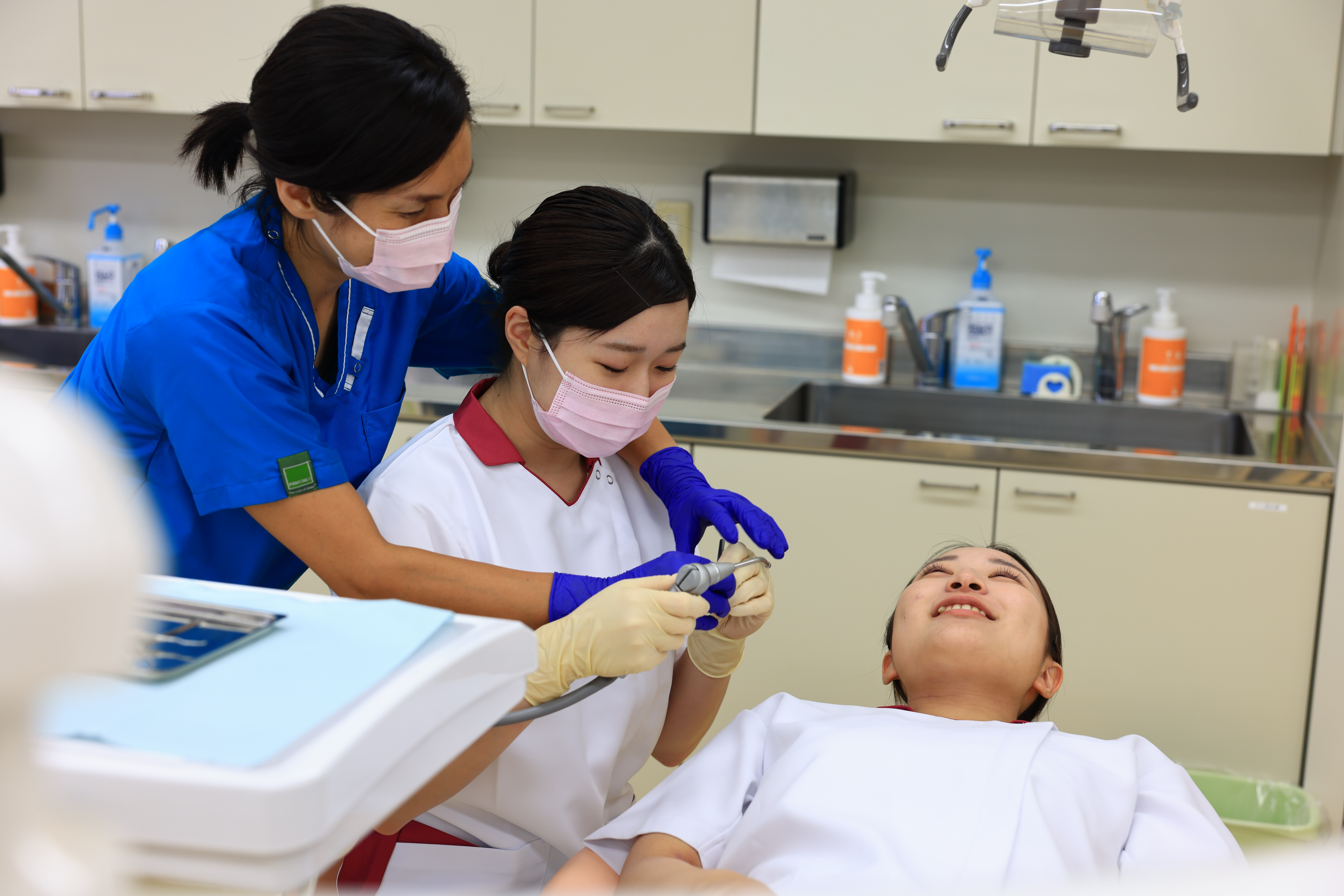 臨床実習室では歯科用のユニットを15台揃え、充実した医療設備の中で技術を磨けます。