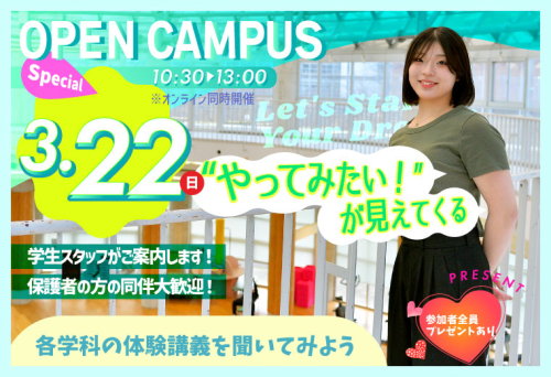 オープンキャンパス検索 学校の種類 大学 短期大学 専門学校 その他教育機関 エリア・開催地域 選択 エリアを選択してください エリアを選択する 系統・分野 選択 系統・分野を選択してください 系統・分野を選択する 日程を指定する ~ 実施形式 来場形式 オンライン形式 事前申し込み 事前予約必須 不要 607件の検索結果がでました。 日付が早い順 日付が遅い順 東京都 白梅学園大学 シラウメガクエンダイガク 学校の詳細を見る テーマは「人」~ 人を想い、人と出会う白梅~ ぜひ白梅の魅力を体感してください!! 「模擬授業」や「在学生によるキャンパスツアー」を通じて学生生活をイメージすることができます。2024年からの学科改組についても全体説明や個別相談などでいち早くお知らせします。総合型選抜に対応した模擬授業もあるので受験生は要チェックです! 東京都 東京未来大学 トウキョウミライダイガク 学校の詳細を見る ★センパイや先生との距離が近くて何でも相談できるオープンキャンパス★ 兵庫県 神戸医療未来大学 コウベイリョウミライダイガク 学校の詳細を見る 短い時間でぎゅぎゅっと見学! 学生スタッフがご案内! ★大学紹介・学科案内・入試説明 ★体験講義 ★キャンパスツアー ★学生寮見学 ★学生食堂ランチ体験(無料:来場のみ) ★個別相談 *参加者全員プレゼントあり(来場のみ) *姫路駅・福崎駅からの無料送迎あり *お車で来られる方には大学無料駐車場あり *保護者の方の同伴大歓迎 参加申込は、大学ホームページから! https://www.kinwu.ac.jp/news/2025oc/ 東京都 国際動物専門学校 コクサイドウブツセンモンガッコウ 学校の詳細を見る さまざまなオープンキャンパス・イベントが予定されているよ♪ 国際動物専門学校へ、ようこそ 国際動物専門学校では、オープンキャンパスを随時開催しています。 教職員や在学生に授業や実習のことなど、何でも聞けるチャンスです! お気軽にご参加ください。 友だち・保護者様参加OK 何回でも参加OK 東京都 専門学校日本ホテルスクール ニホンホテルスクール 学校の詳細を見る 日本ホテルスクールのイベントは“はじめてでも大丈夫”。 高校3年生はもちろん、1・2年生向けのイベントもたくさん開催中。 スクールナビゲーター(在校生スタッフ)とともに、みなさんのご来校をお待ちしています。 週末だけでなく、平日の放課後にも開催しています。 さらに、ホテル・ブライダルの施設を使ったスペシャルイベントも企画中です。 他にも、個別WEB相談を承っていますので、詳しくは学校HPをご覧ください。 1 … 82 83 84 85 86 … 122