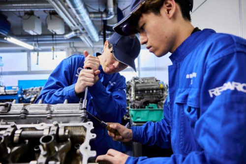 学校には美容室のような実習室やコーセーのコスメが試せるコーナーも