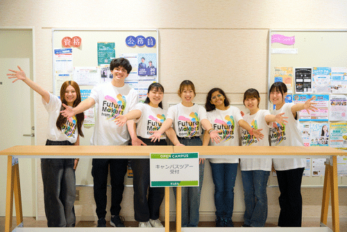 在学生とお話しして、京都橘を知ろう!京都橘大学オープンキャンパスは、本学の魅力や特長を余すことなくお伝えできるように、たくさんの企画を用意しています。在学生が学内の定番スポットから隠れた名所を案内する「キャンパスツアー」や、在学生のリアルな学生生活を知ることができる「キャンパスライフ紹介」のほか、「学科ガイダンス&ミニ講義」「学食体験」で一足早く京都橘のキャンパスライフを体験することができます。