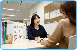 相談の窓口、学習センターを全国各地に設置。予約制オンラインで、学修支援センターに相談、就活は日本大学のNU就職サイトを利用できます。