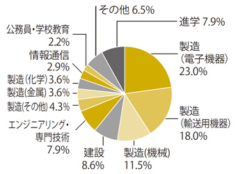 あらゆる産業分野に必要な集積回路やセンサなどの電子デバイスについて、電子材料から応用まで幅広く学びます。太陽電池、発光・受光素子など光応用技術を身につけます。