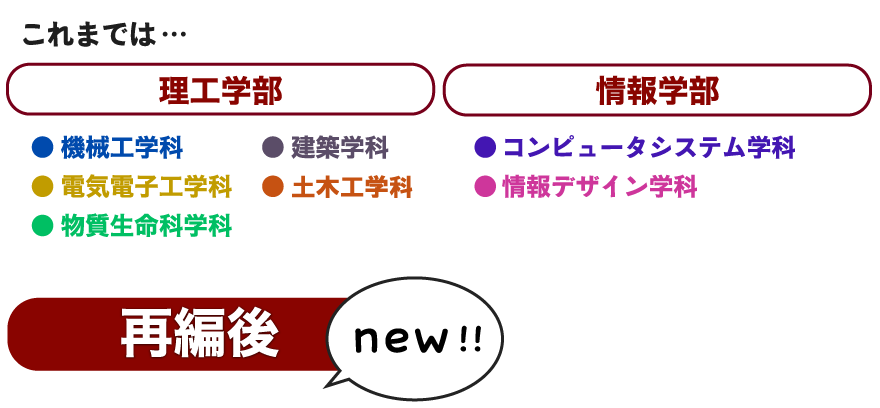 本学ではこれまでも、教員一人あたりの学生数が少ない少人数制教育を実践し、学業から進路まできめ細かなサポートを行ってきました。今回の再編では、こうした“学生に寄り添う姿勢”をさらに発展させ、分野を横断して学べる仕組みを整備。