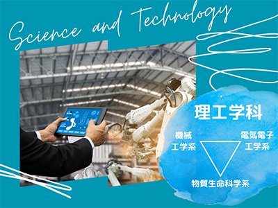 理学分野の学科。高校で学ぶ物理、化学、生物などを基礎に生命科学、食品科学、材料科学、環境科学、エネルギー科学など、専門的な知識と技術を実践的に修得。科学・技術と自然・環境の調和を理解し、環境・生活・生命・安全に関連する問題の解決に貢献できる人材を育成します。