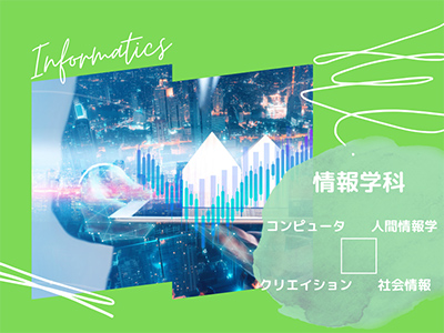 情報学部では、コンピュータサイエンスやデータサイエンス、AI技術を活用した情報分析のスキルを身につけることができ、数理・データサイエンス・AI教育プログラムの認定を受けたカリキュラムを提供しています。人や社会の行動・心理・言語などをデータとして捉え、分析・活用する力を育てます。本学での学びを通じて、社会のさまざまな課題に向き合い、自分の力で未来を切り拓く人材として成長してください。