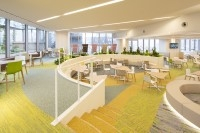 いつも学生が昼食で使用したり、放課後に勉強したりする憩いの場所です。4人掛け席などもありみんなで談笑したり、1人掛けソファーでまったりと過ごしたりと思いのまま使うことができます。