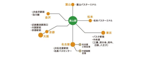 - 高山濃飛バスセンター(JR高山本線高山駅すぐ)からタクシーで5分