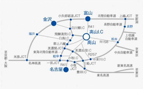 - 中部縦貫自動車道(高山清見道路)高山ICからクルマで5分