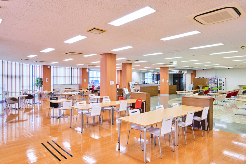 在校生に大人気のカフェテリア!約400名収容することができる解放感溢れる大空間で、楽しくおしゃべりしながら利用できます♪