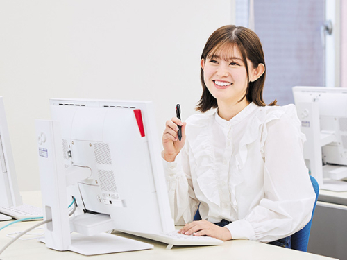 社内システムやWebサイトの構築など、企業にとってIT導入は欠かせない重要課題です。ITビジネス科では、ITの知識や技術はもちろん、ビジネスマナーやコミュニケーション能力などもしっかりと学び、専門知識と社会から喜ばれる力を同時にサポート。卒業生たちは学んだすべてを発揮し、各企業から即戦力として高い評価をいただいています。