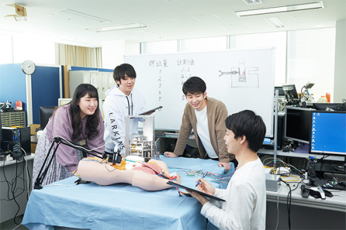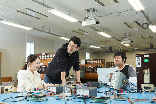 通信・情報、エネルギー・制御、材料・エレクトロニクスなどの「電気電子・情報工学分野」と、医療機器、人工臓器、再生医療、福祉機器などの「生体医工学分野」における専門知識を備えた技術者を養成します。