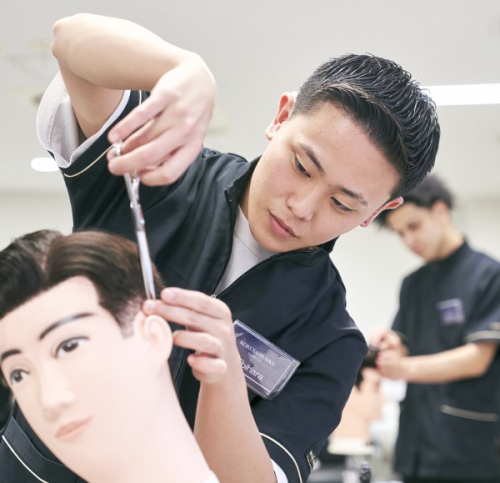 理容師免許(国家資格)取得を前提に、ヘアカットやシェービングなど理容特有の専門技術から、実際のサロンニーズに応じたフェイシャルトリートメントやネイルケア、メイク、着付などの美容技術まで総合的に習得します。正しいベーシックを学ぶことから始めて、ひとつひとつ丁寧に確認しながら段階的に授業を進行します。また、授業はクラス単位で行うので、わからないことはすぐに質問できる環境です。10数名で行う実習もあります。理論はわかるまで、技術はできるまで、学生一人ひとりに丁寧に対応します。また、学生の個性を知る担任が就職活動のアドバイスをしています。