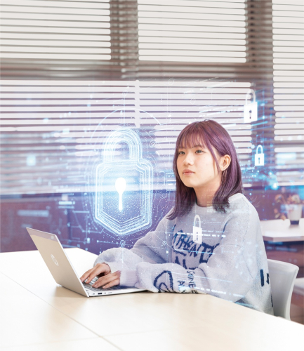 ネットワークの普及とともに情報セキュリティの重要性が増す今日。セキュリティ専攻では、実務に即したネットワークの仕組みや構築技術、さらに最新のセキュリティ技術を学びます。