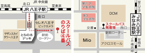 JR中央線「八王子」駅南口から無料スクールバス10分
