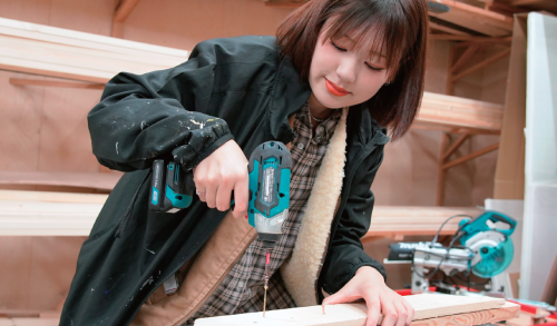 1年次はデザイン力、イメージをかたちにする創造力、そして大道具・小道具制作などの基礎力を養い、2年次以降は、実際の番組セットやプロジェクションマッピングなどの映像に合わせた作品制作を学びます。他コースが作る映像・舞台作品の大道具・小道具制作を担当することで、在校中から多くのエンタメ作品のモノづくりを経験できます。
