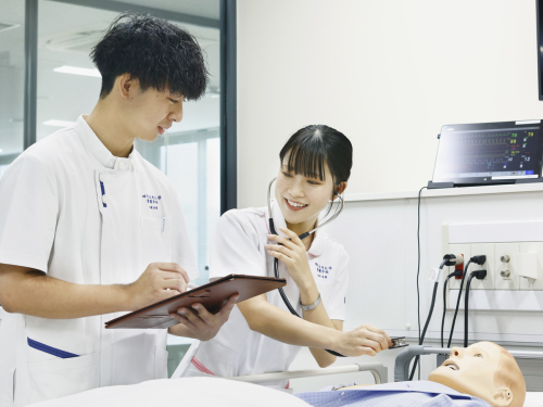 最先端のシミュレーション教育ときめ細かなサポート体制で「地域医療」と「最先端医療」の両方を深く学び、地域社会に貢献する看護職を育成します。授業料全額もしくは半額相当額を支給する「看護学部特別奨学金」を設けており、経済的なサポートも充実しています。