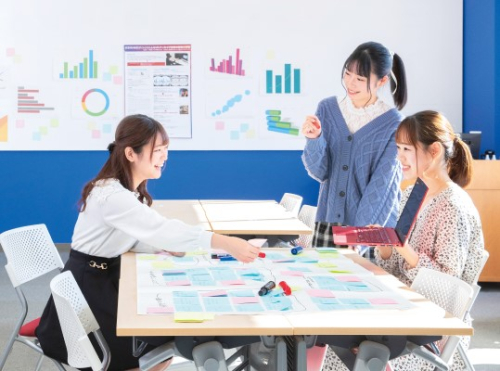 これからの社会で必要なマーケティング、データ分析、プログラミング、社会調査など、多彩な分野から学び、「自分の強み」を身につけます。また、知識の修得だけではなく、実践していく力をつけるため、実践的授業を展開しています。