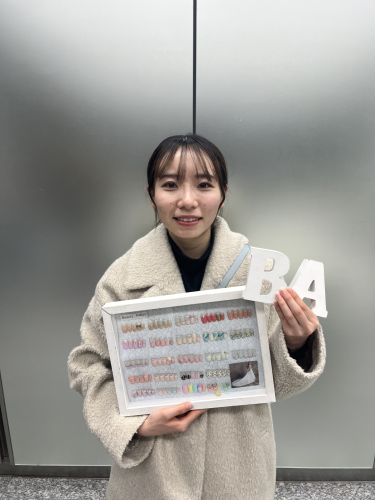 卒業してから見えるKOKUSAIの魅力とは? KOKUSAIならではの躾教 育を学んだことで、あいさつや 笑顔、気遣いなど社会人として必要なことが、入社当初から自然にできました。また、基本の技術をしっかり教えていただき、ネイルの検定を取得することもできたので、自信を持ってお客さまに施術をしています。今では幅広い年齢のお客さまから指名を頂くことができ、とてもやりがいを感じています。