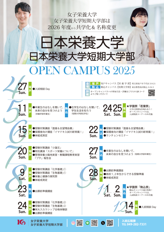 全体説明、学科説明、入試対策講座、模擬授業、なんでも相談(入試相談含む)、施設見学、学食体験など、たくさんのイベントをご用意しています!