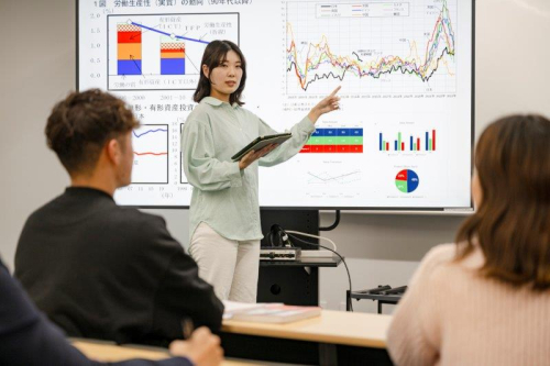 経済学部では、経済学を通し国内外の社会、企業、暮らし、法律、政策などを学ぶことで発想力と実践力を高めます。