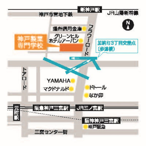 アクセスマップ 神戸製菓専門学校 最寄駅 ●JR「三ノ宮駅」、阪急・阪神「神戸三宮駅」からフラワーロードを北へ徒歩10分 ●JR山陽新幹線・神戸市営地下鉄「新神戸駅」からフラワーロードを南へ徒歩7分 住所 〒650-0001 兵庫県神戸市中央区加納町2-5-1 GoogleMapで開く Google Map 神戸製菓専門学校をもっと知るなら! パンフレットを追加する 学校TOP 学部・学科・コース 入試方法 学費・奨学金 オープンキャンパス 資格・技術・就職 在校生・先輩メッセージ 自慢の先生・研究・学生活動 フォトギャラリー アクセスマップ 最近チェックした学校 大阪建設専門学校 大阪府 武蔵野短期大学 埼玉県 関西ビューティプロ専門学校 大阪府 町田福祉保育専門学校 東京都 福井医療・スポーツ専門学校 福井県 文化服装学院 東京都 この学校を見た人はこちらの学校も見ています 神戸電子専門学校 兵庫県 テレビCMでおなじみ!電子だけではありません!65年以上の歴史で培った「創って学ぶ」実践的なカリキュラムと夢が広がる18学科を擁する総合学園です。 PR 神戸・甲陽デザイン&テクノロジー専門学校 兵庫県 ゲーム・esports・AI・IT・CG・映像・イラスト・スポーツテックを学び、デザインとテクノロジーで「創造力」を仕事にしよう! PR 尼崎理容美容専門学校 兵庫県 少人数制で学び、広がる未来。 PR Close 大学・短期大学 かんたん資料請求 専門学校・その他 かんたん資料請求 TOP