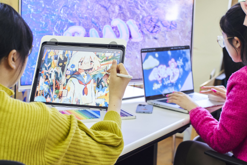 「デジタルで描くこと」と「デジタルで動かすこと」を軸とした授業で、ソーシャルメディアやWebメディア、動画など、多様なメディアに対応する新しいイラスト表現と発信方法を学びます。この専攻では、デジタル表現の強みを最大限に生かして、従来のイラストレーターが担うクライアントワークだけではなく、自ら発信し、現代的で新しい表現を生み出していけるクリエイターを育成します。